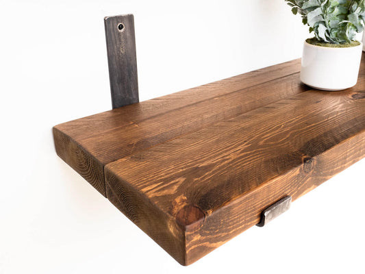 Choose from our vast range of shelves, from floating designs for a minimalist, modern look, to bracketed shelving for traditional support and style. We also offer rustic options with hand-distressed finishes for added character, and a variety of finishes, from dark to aged. Each shelf can be custom-sized to fit your space with ease and display your treasured items beautifully.