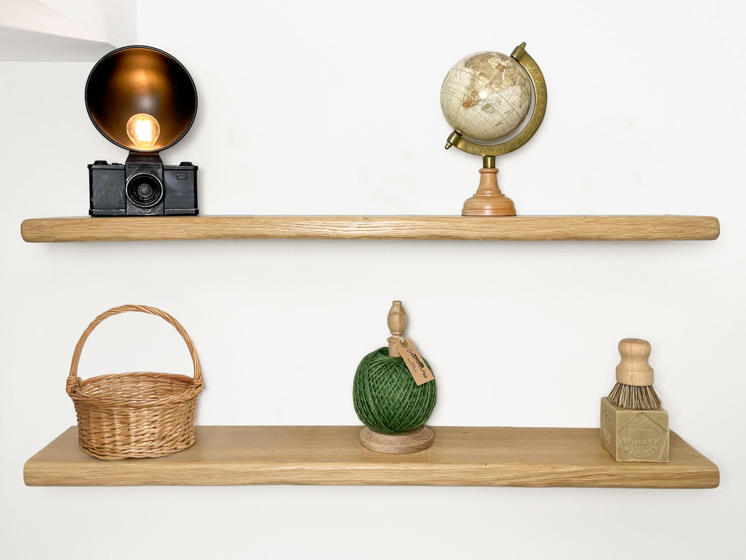 We aim to manufacture our rustic oak floating shelves to the highest possible standard. In order to minimise waste, we may manufacture floating shelves from two or more pieces of timber to create the required depth. By following strict industry standard techniques, this does not detract from the overall quality and actually results in further stability.