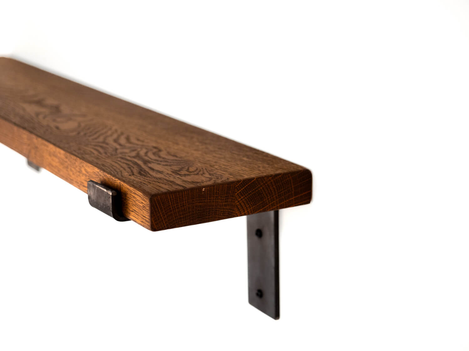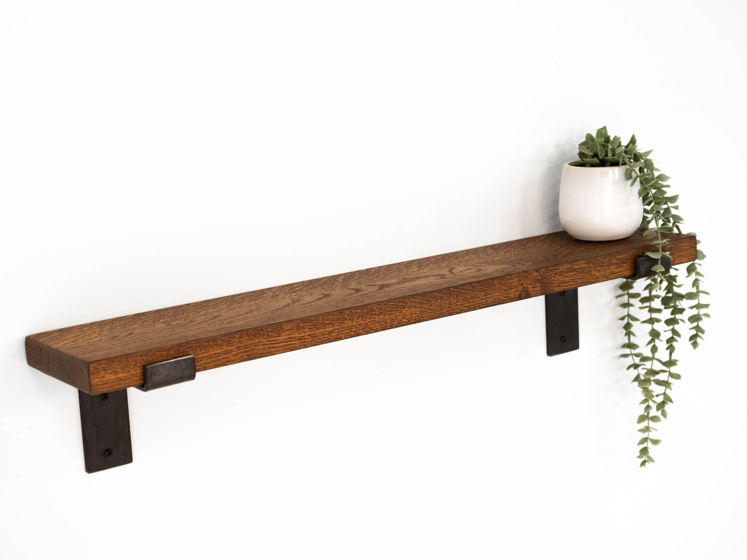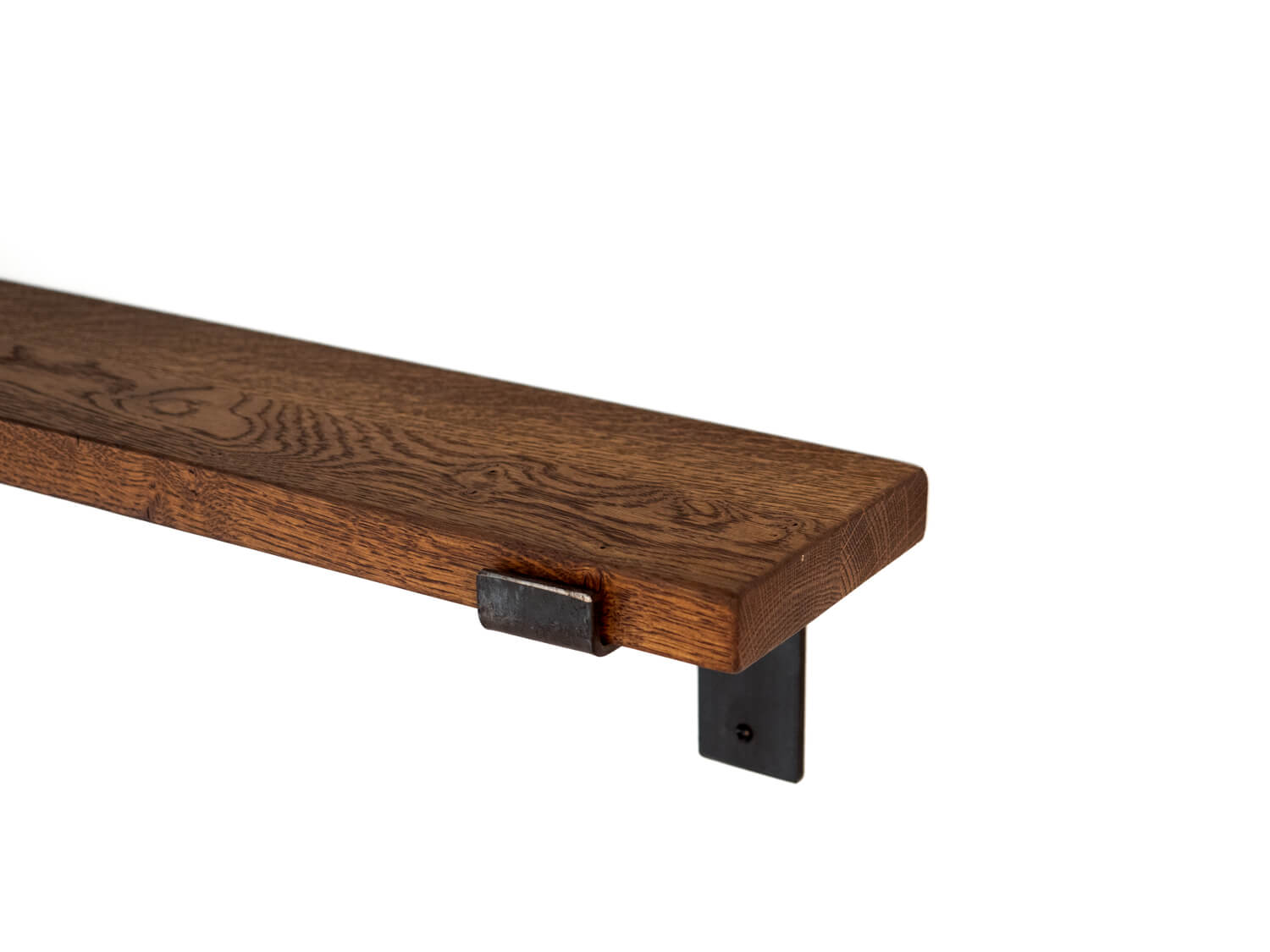 Our solid oak shelves with lipped steel brackets are handcrafted from the finest quality kiln dried European oak timber, 32mm thick. Each shelf goes through our carefully developed 10 stage manufacturing process. We're confident that these shelves are the best about which is why we offer a lifetime guarantee!